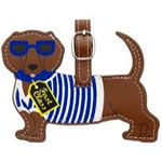 Dachshund Shopping ToteIt's in the bag with this shopper! Full of detail and made of coated canvas and faux leather. Little smooth dachshund in black and white on this cool-for-street background. (Print on the front - back is solid black.) Grey gros-grain ribbon trims the edges. The interior is black plaid. A zippered pouch and two pockets on the inside for plenty of stash space. Handles are long enough to be carried over the shoulder or just carried. Comes with rubber dog bone toy charm. Signature style. Approximately 13"x14". Have to say, we love this bag! Item number -1010503 $56.95 |